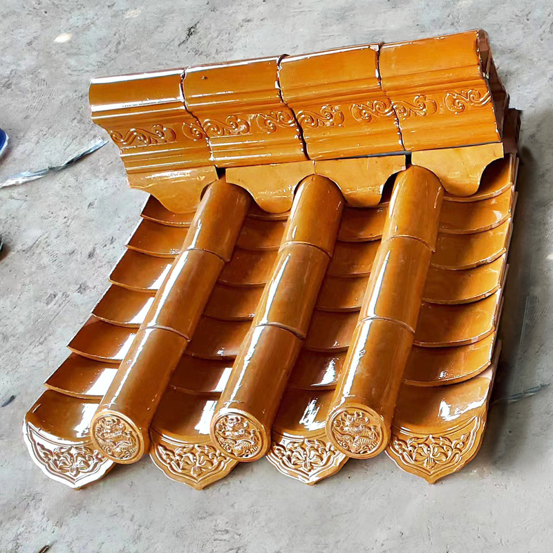 Glazed tiles are a traditional Chinese building material made from high-quality ore raw materials, which are screened, crushed, high-pressure molded, and fired at high temperatures. They have significant advantages such as high strength, good flatness, low water absorption, anti-bending, anti-freezing, acid and alkali resistance, and never fading.