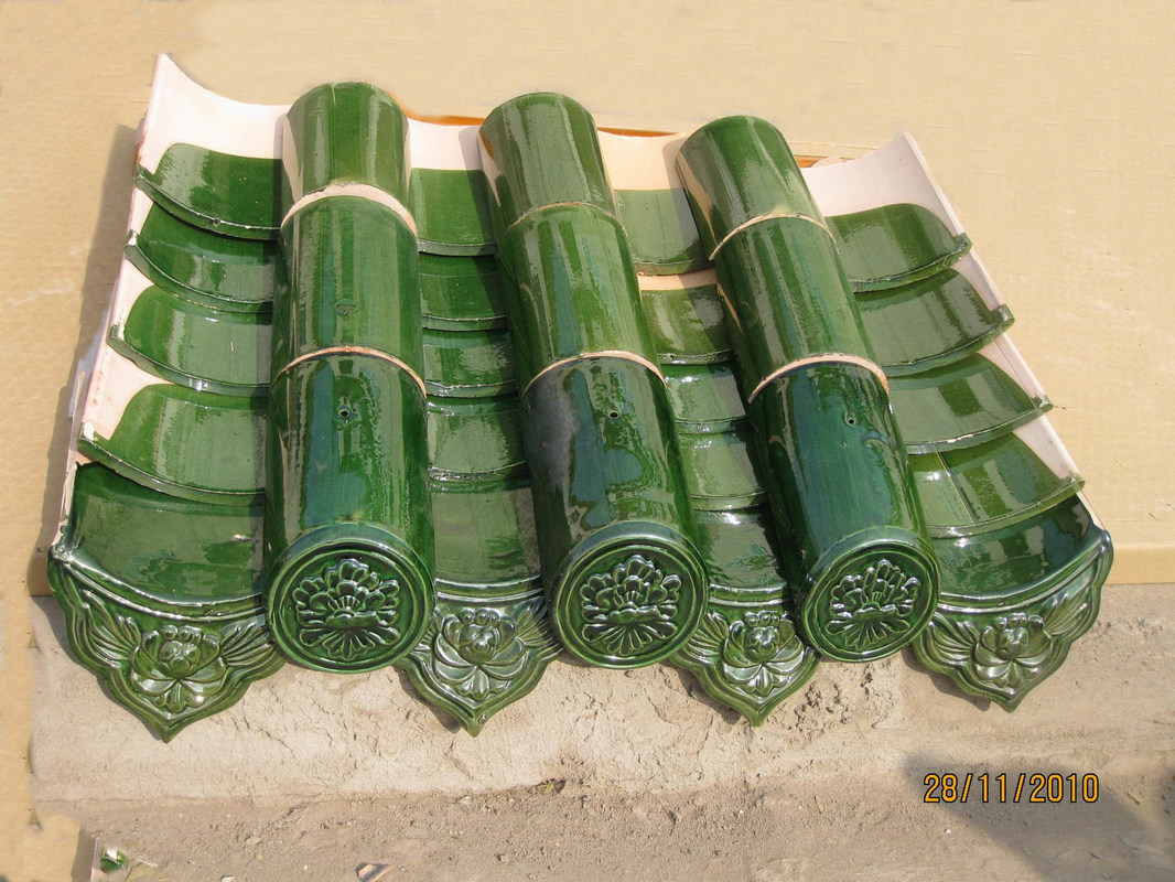 Глазурованная черепица - традиционный китайский строительный материал, изготовленный из высококачественного рудного сырья, которое просеивается, измельчается, формуется под высоким давлением и обжигается при высоких температурах. Она обладает такими существенными преимуществами, как высокая прочность, хорошая плоскостность, низкое водопоглощение, устойчивость к изгибу, морозостойкость, кислото- и щелочестойкость, а также никогда не выцветает.
