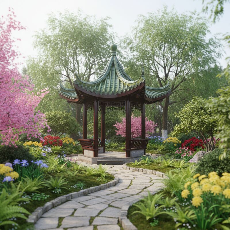 Садовые павильоны в азиатском стиле: Создает декоративные садовые пагоды или ландшафтные башни в общественных парках, ботанических садах и частных поместьях.